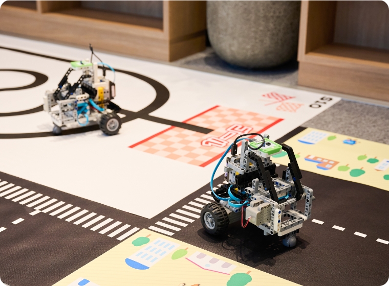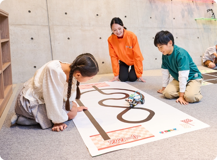 どんなロボットを作るか考えて、組み立てて、目の前で動かす。