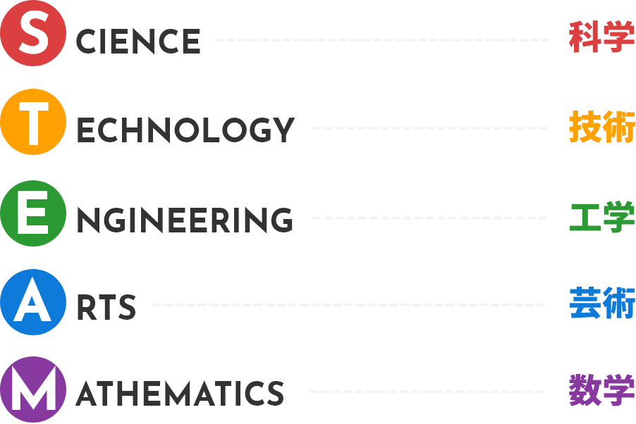 科学、技術、工学、芸術、数学の5つの分野の学習を通し、IT社会に通用する子どもを育てていくための教育方針で、2020年小学校でのプログラミング教育が必修となりました。