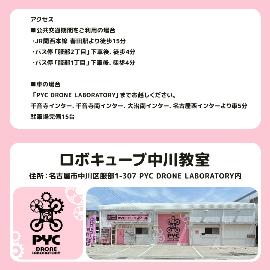 ブログ ホーム > ブログ > イベント関係 > 【中川教室】12月新期生 募集中! 【中川教室】12月新期生 募集中! 2025.11.13 中川教室 教室へのお問合せ先 教室名 中川教室 住 所 〒454-0976 愛知県名古屋市中川区服部1-307 電 話 052-990-4774 メール drone@pyc.co.jp ブログ一覧に戻る category カテゴリーごとに見る イベント関係 教室の様子 その他 school 教室ごとに見る 愛知県 solte豊川蔵子教室タクテックス本陣教室ロボキューブ本部中川教室坂下教室