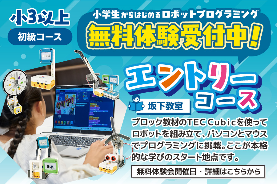 ブログ ホーム > ブログ > 坂下教室 blog ブログ 2025.09.26 【坂下教室】エントリーコース無料体験会 …… 坂下教室 2025.09.26 【坂下教室】スタートアップコース トライアル体験会 …… 坂下教室 2025.08.12 06/16(土)16f 講師のひとりごと ビンゴゲームのプログラム。乱数はわかるけど、先生の言っている「出目」っ…… 坂下教室 2025.08.09 06/26(木)x4e 講師のひとりごと 毎年恒例の七夕の願いは「パルクールで世界一!」と。 なんでも一時…… 坂下教室 2025.08.08 06/21(土)4k 講師のひとりごと 四足歩行ロボット②では、スタート地点からポイントを通過し、 左へ…… 坂下教室 2025.08.07 06/15(日)x15b 講師のひとりごと 今日は企画内容をもう一度整理してからロボットの作りこみを始めます。 …… 坂下教室 2025.08.04 06/15(日)15g 講師のひとりごと ビンゴゲーム♪楽しく遊んだ事のあるゲームを自分で作ることに、興味津々。…… 坂下教室 2025.08.03 06/14(土)x15a 講師のひとりごと エクスプローラーコースではロボットの組み立てが佳境に突入!! 作…… 坂下教室 2025.07.31 06/14(土)x3cf 講師のひとりごと 前回の続きで、クルマのフルモデルチェンジとプログラミング。 クル…… 坂下教室 2025.07.28 06/14(土)15f 講師のひとりごと 外は嵐('◇')ゞ 今日は、みんなが知っている「ビンゴゲーム」を作りま…… 坂下教室 2025.07.26 06/12(木)x3e 講師のひとりごと ダンプカーの組み立ての2回目で、仮完成と架台部分の動作確認までが今日の…… 坂下教室 2025.07.25 06/07(土)3k 講師のひとりごと 本日のテーマは「四足歩行ロボット①」 今日はロボットのベース部を…… 坂下教室 2025.07.22 06/07(土)3eze 講師のひとりごと アルゼンチン教室の3回目。 テーマは「四足歩行ロボット①」で、ロボッ…… 坂下教室 2025.07.20 06/05(木)3j 講師のひとりごと 本日のテーマは「四足歩行ロボット①」です。 ここではスタンダードコー…… 坂下教室 2025.07.19 06/01(日)x14ab 講師のひとりごと 子どもたちは自分の想いをカタチに一日です。 参考モデルのルーレットに…… 坂下教室 1 2 3 … 14 category カテゴリーごとに見る イベント関係 教室の様子 その他 school 教室ごとに見る 愛知県 タクテックス本陣教室ロボキューブ本部坂下教室
