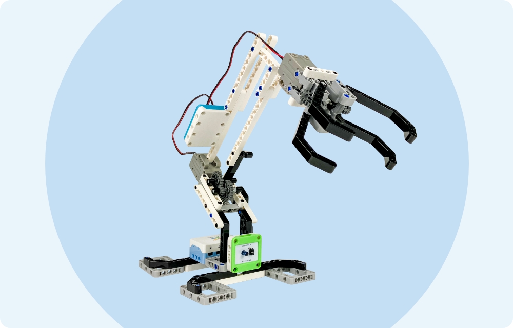 - マニピュレーターのプログラムを作成します。リモコンのボタンを押している間だけ「上下」「爪の開閉」を行うロボットです。