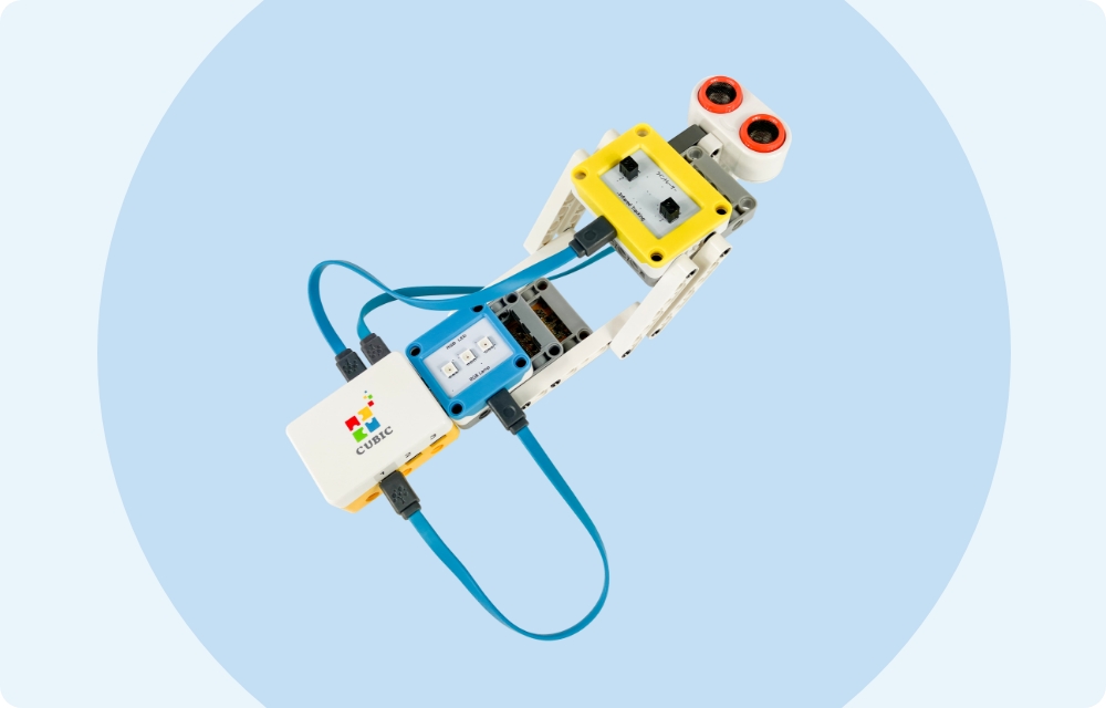 複数の電子ブロックを取り入れたロボットの製作と、プログラミングと組合わせ、実践的な工作とプログラミングを学びます。