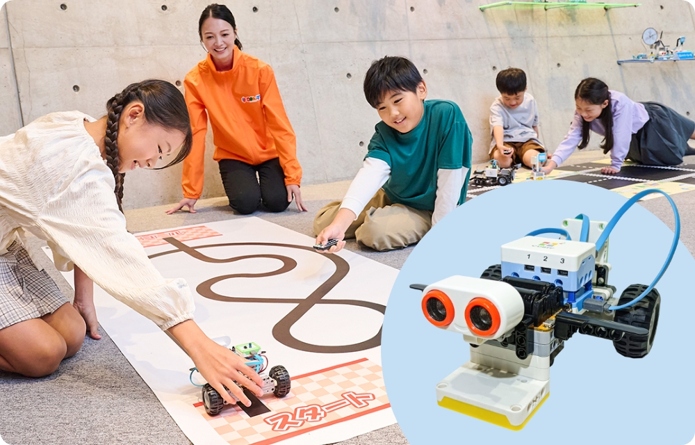 - チェックポイント付きのコースをあらかじめ動作を決めたプログラムで自動周回する車を作ります。完成後は、何周できるかを競います。