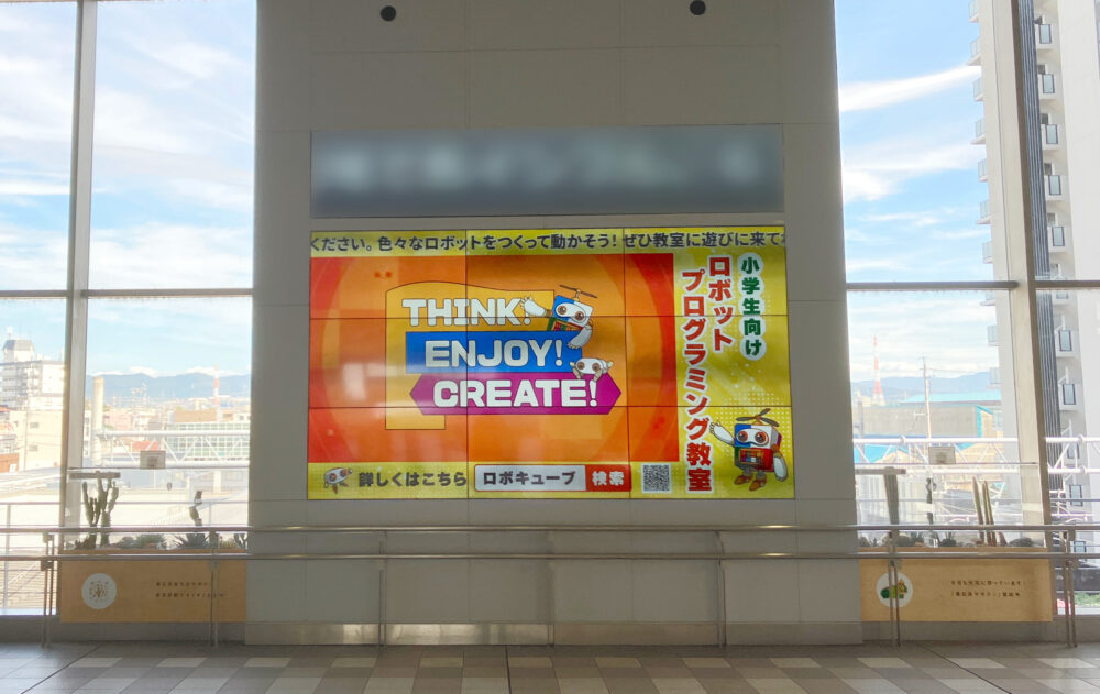 春日井駅自由通路マルチビジョンは改札の前にあります。