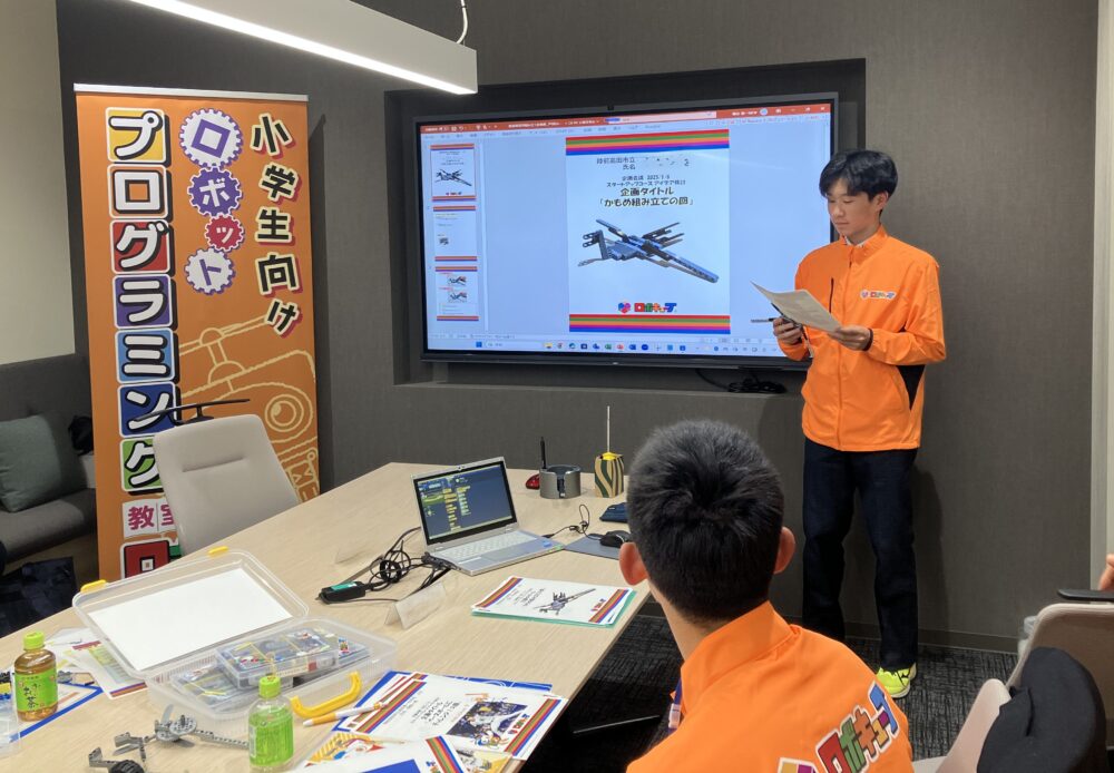 短い時間の間にロボキューブやスクラッチパイの基本を学び、それをもとに新しい作例企画するというチャレンジでしたが、みごとに二人ともしっかりとアイデアを発表してくれました。