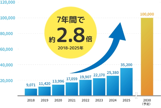 2025年の子ども向け情報教育市場規模は352億円となりました。前年比138.7%と、7年連続で成長を続けています。