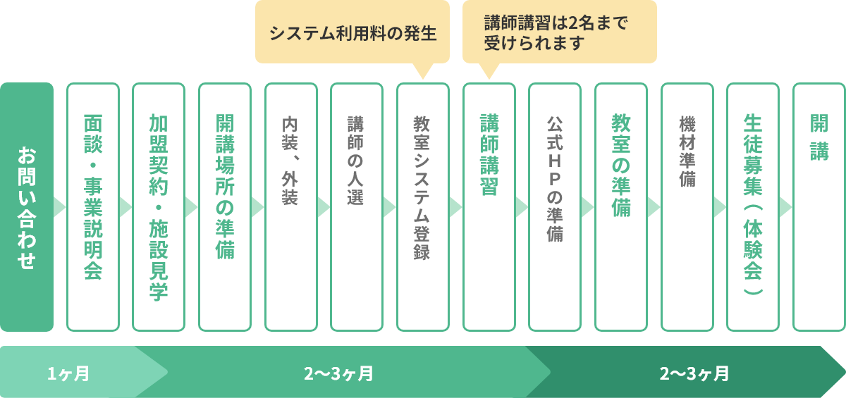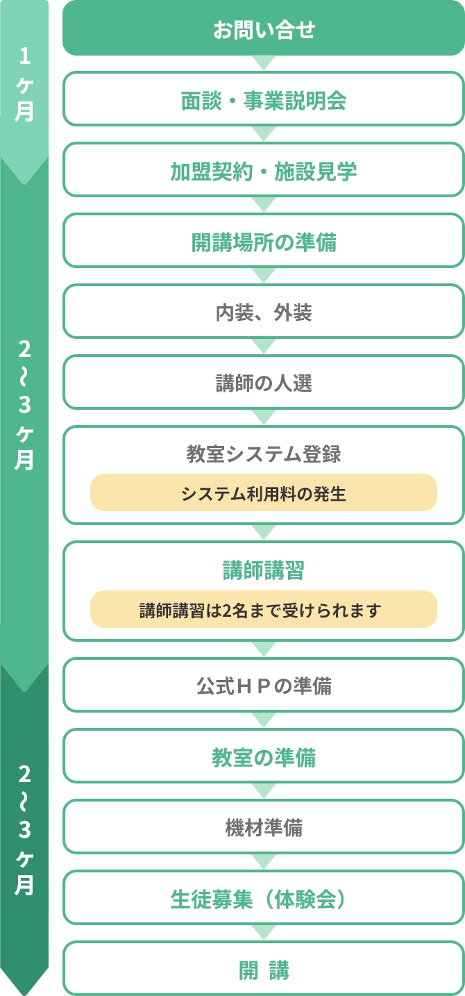 ただし、契約後は教室開講に向けた進捗などを適宜ご確認をさせていただきます。 -