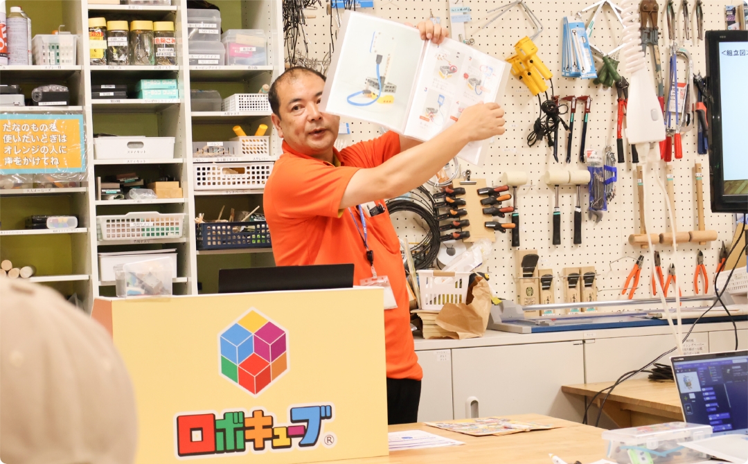 概要や目的を理解したうえで、講師が実際の授業で使用するマニュアルをもとに、組立や授業進行を体験します。